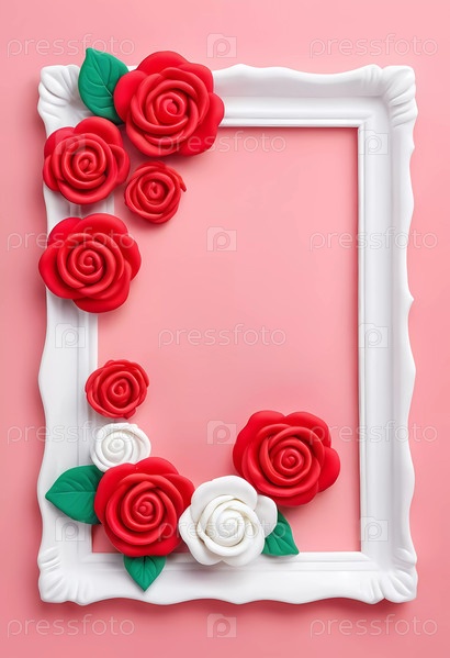 Декоративная рама, украшенная красными и белыми розами на розовом фоне, обеспечивает очаровательный фон для искусства или сообщений. Идеально подходит для празднований и специальных случаев