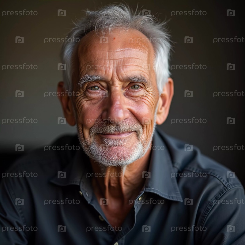 Пожилой мужчина, житель США, с белыми волосами и бородой блестит радостно, демонстрируя свое дружественное поведение в непринужденной одежде