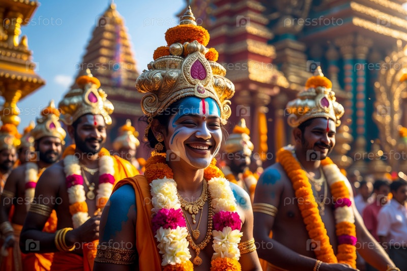 Люди на фестивале традиционный индуистский фестиваль Thaipusam, счастливые мужчины и женщины праздник AI Generative