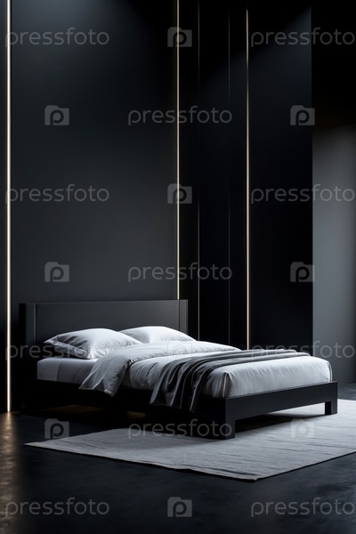 ИИ генеративный современный уютный интерьер спальня квартирная комната черный цвет, комфортный дизайн дома