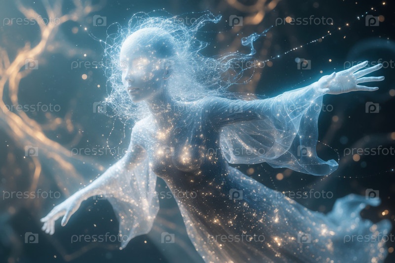 Женщина-гуманоид футуристическая космическая сущность, человек на будущем научно-фантастическом завтрашнем фоне AI Generative