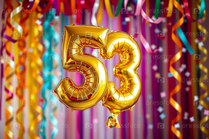 Гелий день рождения воздушный шар формы номер пятьдесят три, золотые буквы фигура 53 праздник праздничный фон декор