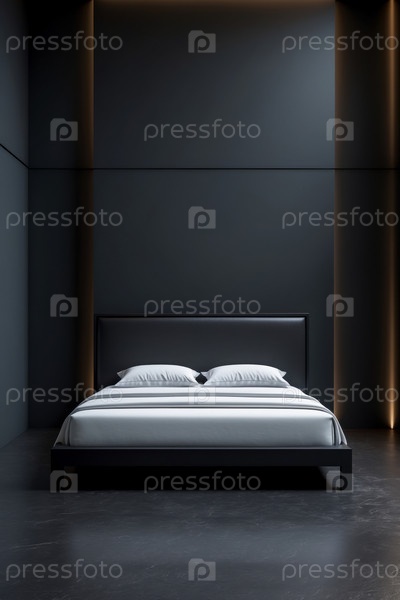 Уютный интерьер Спальня Квартирная комната Черный цвет, Комфортный дом Дизайн современного дома AI Generative