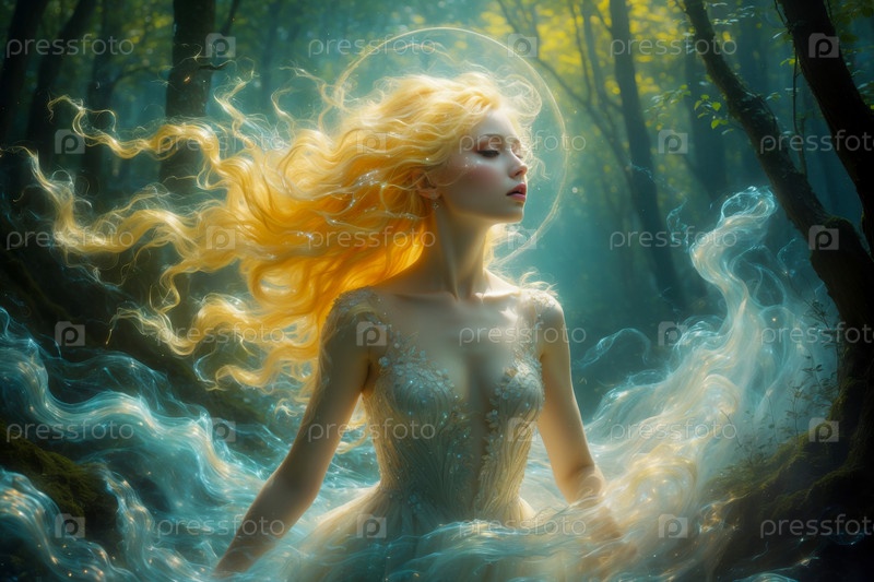 Фантастический портрет молодой красивой имбирной женщины волшебная модель, фея из сказки AI Generative