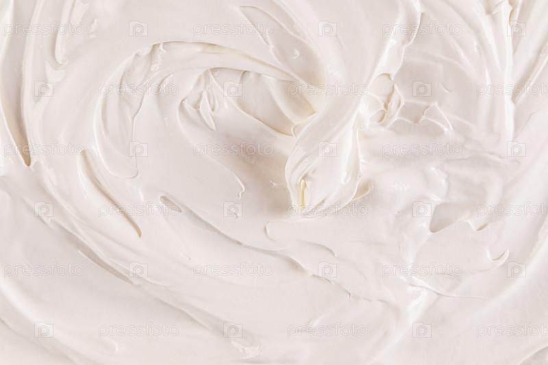 Идеальная гладкая глянцевая текстура белого сливочного масла. Деликатные эластичные волны смеси. Кондитерский фон. Вид сверху. Копировальное пространство
