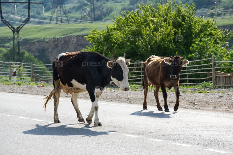 Стадо коров в ущелье Баксан в Кавказских горах России