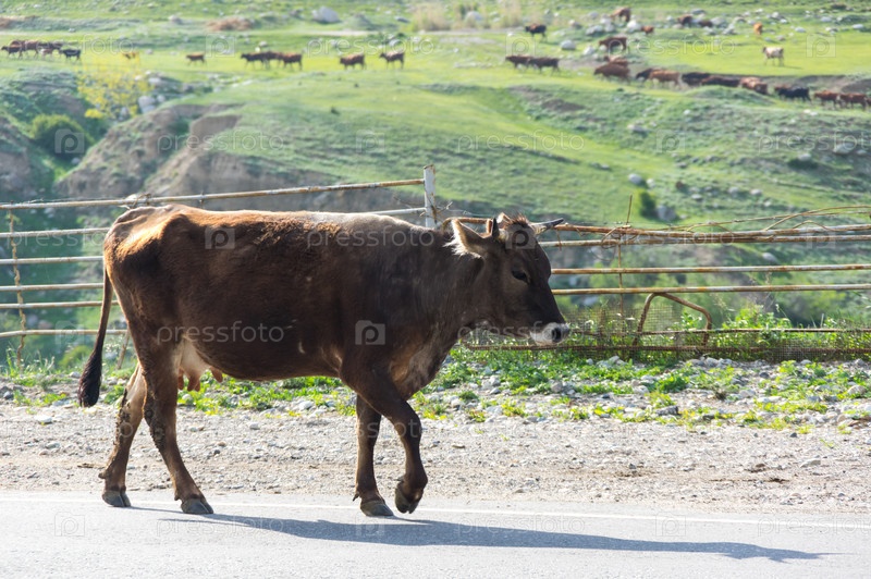 Стадо коров в ущелье Баксан в Кавказских горах России