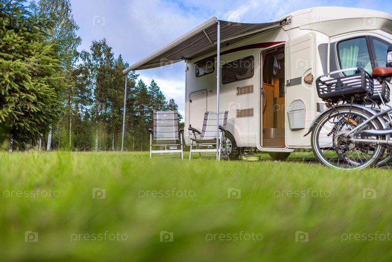 Семейные каникулы путешествия RV, отпускная поездка в трейлере, Караванный автомобиль Отдых
