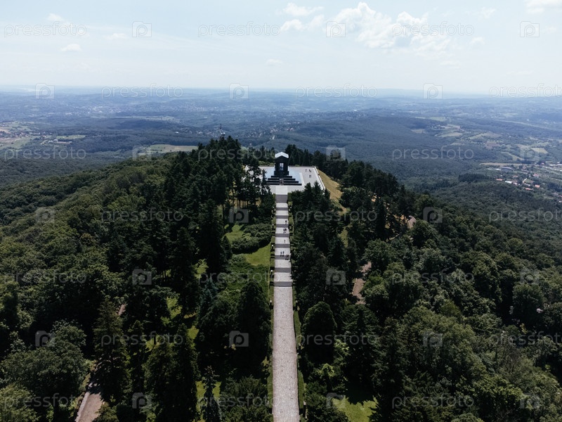 Памятник неизвестному герою на горе Авала, вид с дронов, Белград Сербия