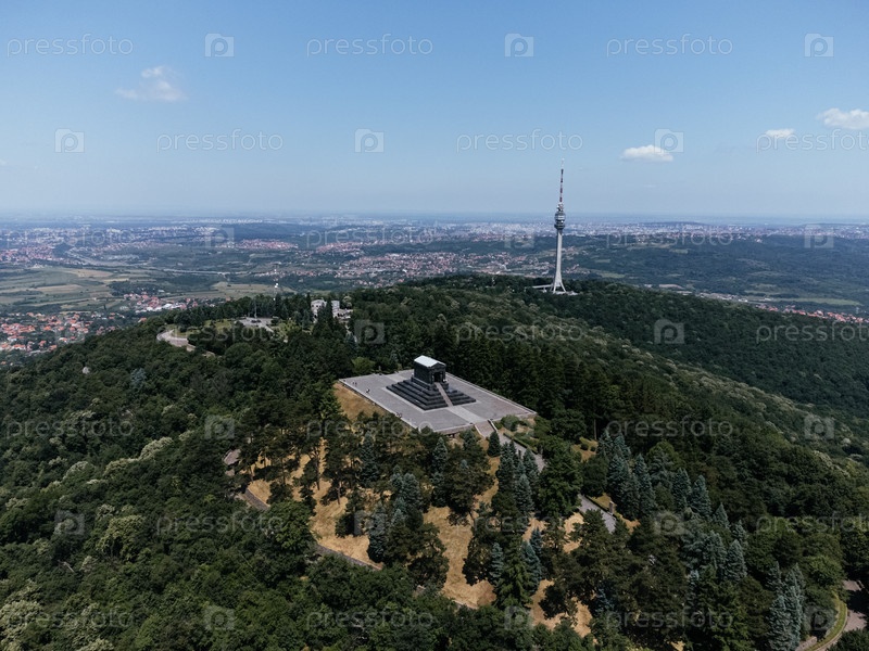 Памятник неизвестному герою на горе Авала, вид с дронов, Белград Сербия