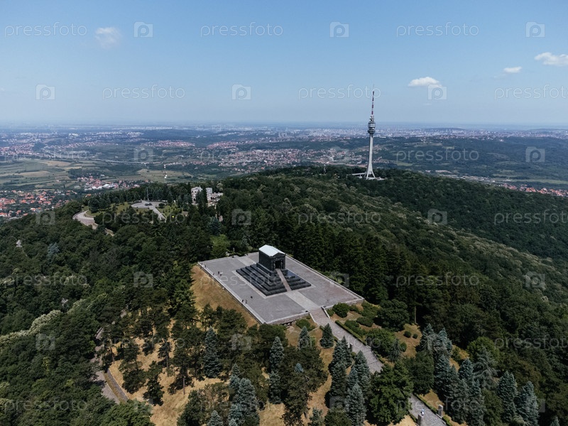 Памятник неизвестному герою на горе Авала, вид с дронов, Белград Сербия