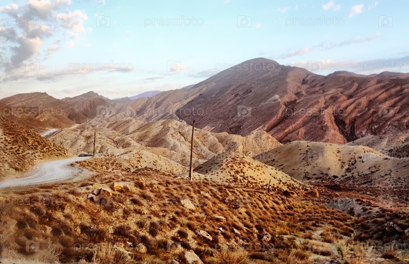 Горы в пустыне, вид с воздуха.Граница Туркменистана и Ирана