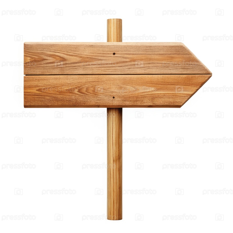 Изолированный деревянный знак со стрелкой с двумя панелями на белом фоне