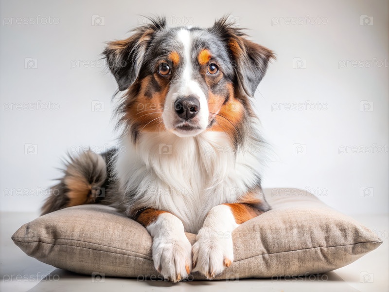Очаровательная австралийская овчарка, отдыхающая на подушке