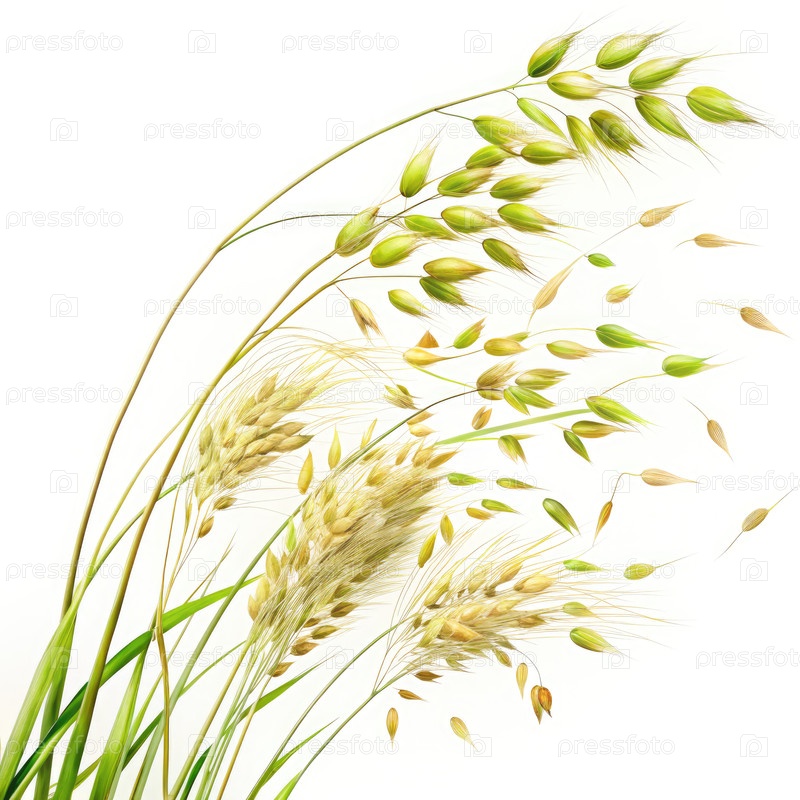 Стертые ветром овсяные растения формируют волну на белом фоне