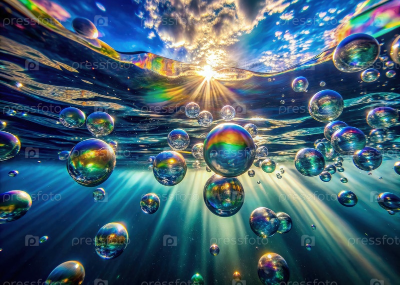 Подводные пузырьки, мерцающие в солнечном свете под поверхностью океана