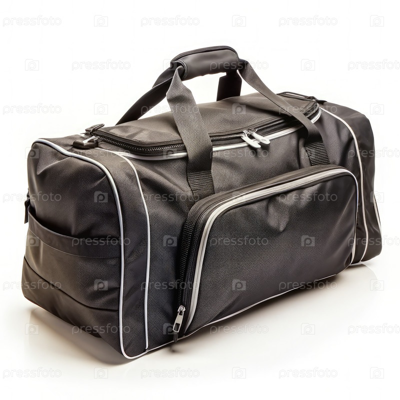 Черная спортивная сумка с серебряной отделкой, изолированная на белом фоне