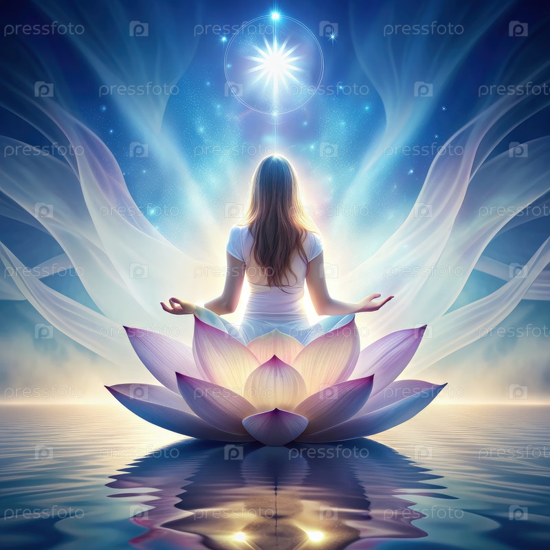 Эфирное существо, медитирующее над цветом лотоса в небесной сфере