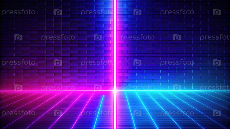 Пустой неоновый стеклянный фон с розовыми и синими огнями