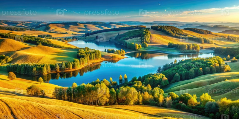 Спокойный утренний свет освещает Rolling Hills и Winding Lake