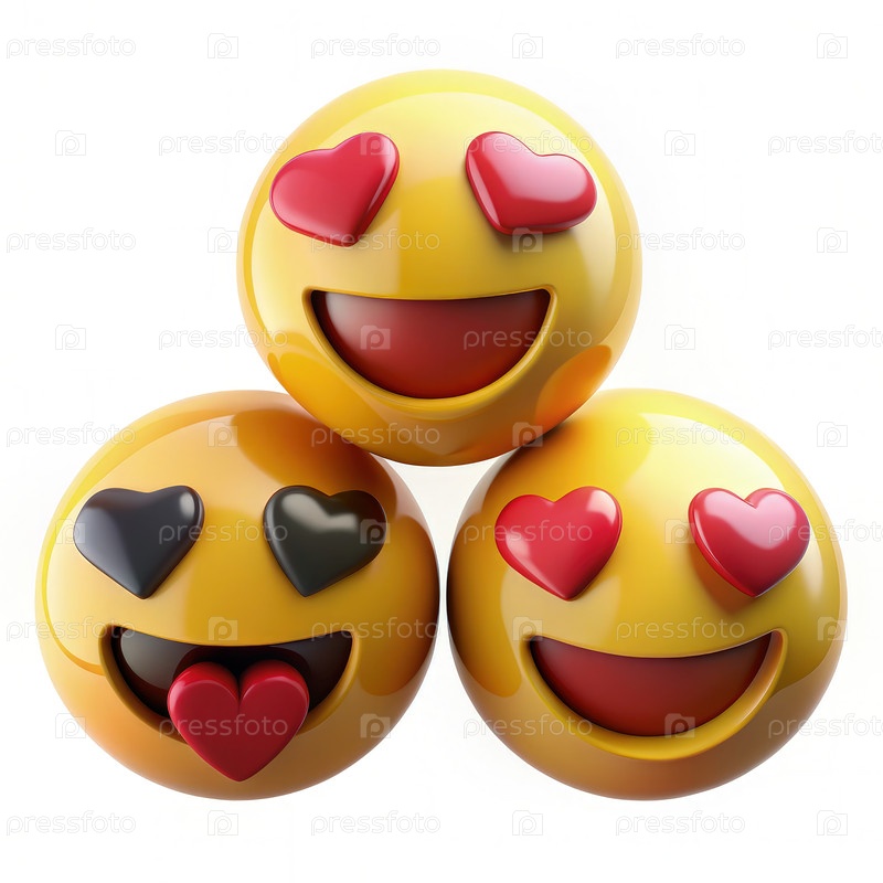 Три желтых эмодзи с сердцами в глазах на белом фоне