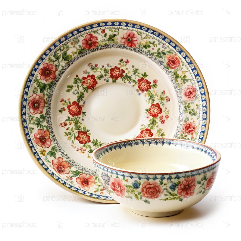 Винтажная керамическая чайница и тарелка с цветочным дизайном. генеративный AI