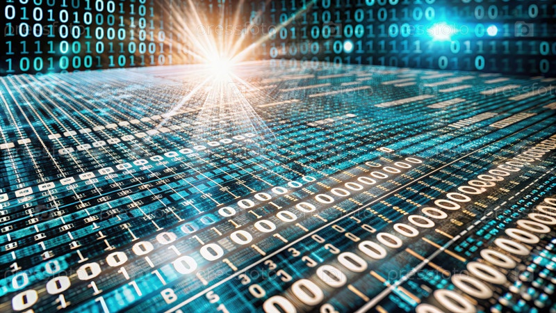 Футуристическое киберпространство с бинарным кодом и светящимися огнями. генеративный ИИ