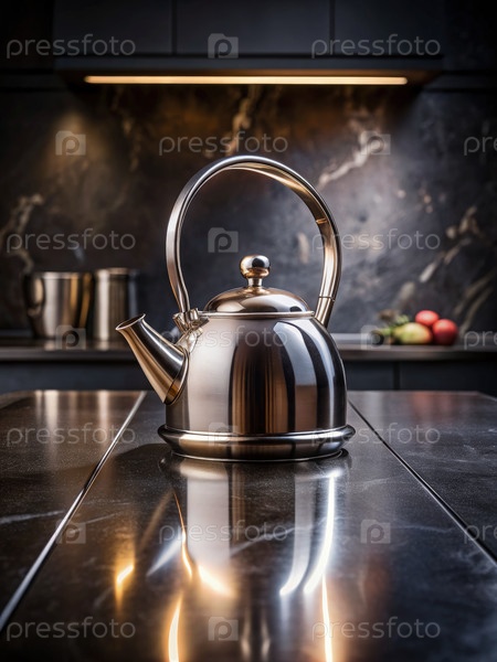Чайник из нержавеющей стали на современном кухонном столе