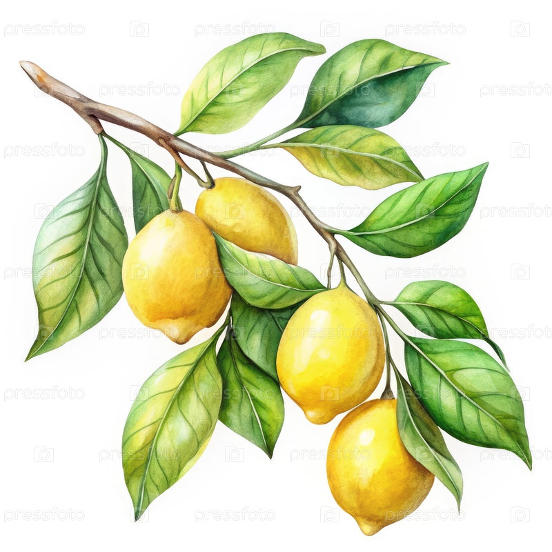 Акварельная иллюстрация ветви лимонного дерева