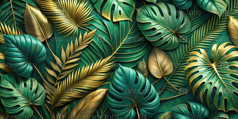 Роскошный зеленый и золотой тропический лист. генеративная ИИ