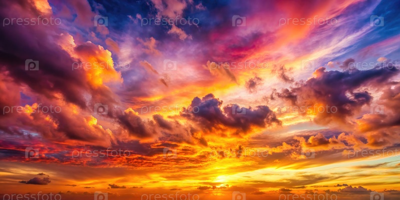 Живое закатное небо с фиолетовыми, оранжевыми и желтыми оттенками