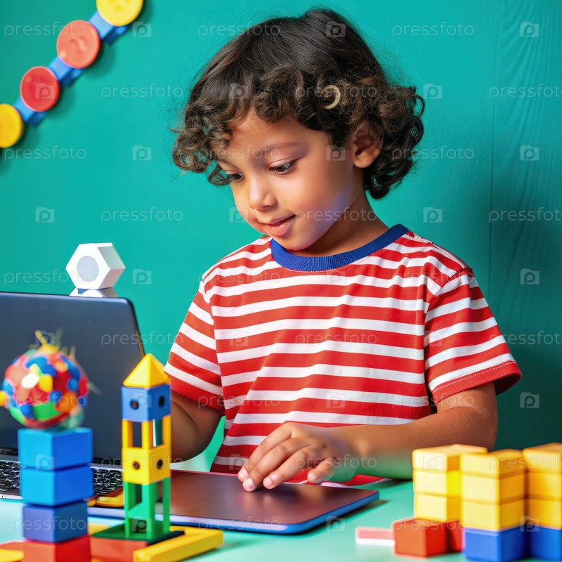 Молодой мальчик использует ноутбук для проекта анимации в игровой обстановке