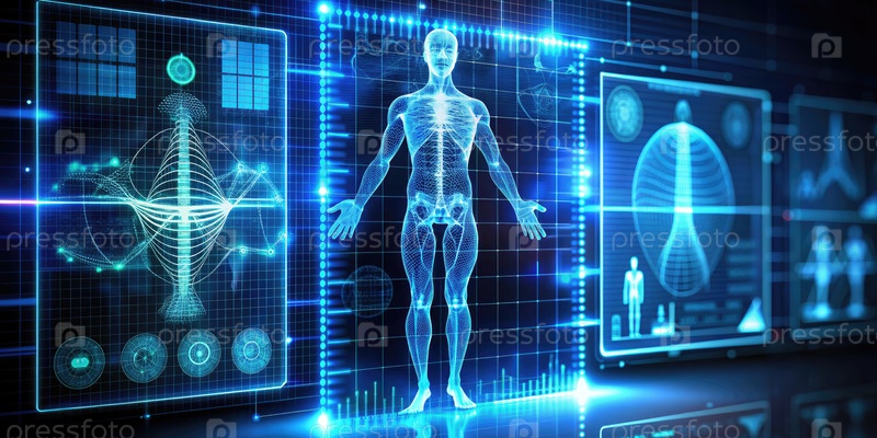 Цифровая человеческая модель с голографическим анализом данных медицинского экрана