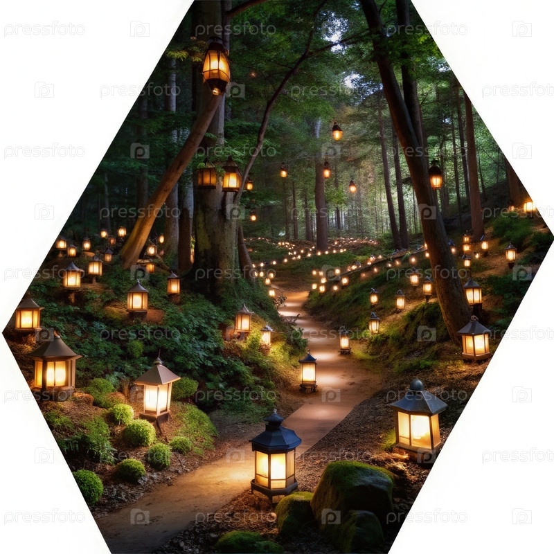 Путь, освещенный фонариком через густой лес ночью