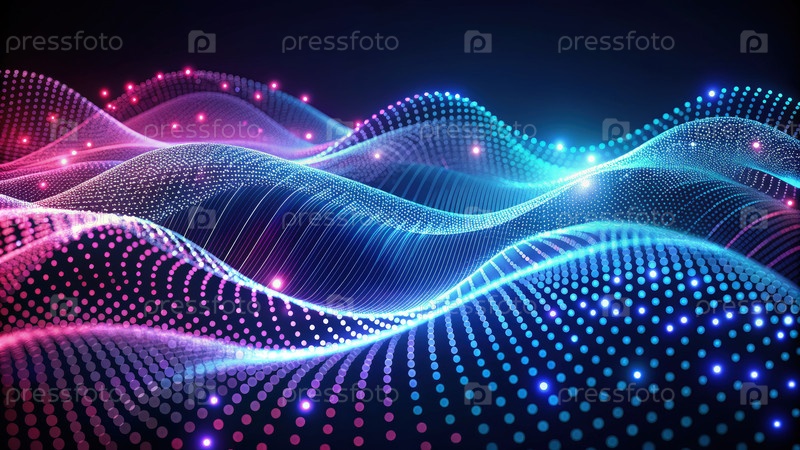 Абстрактная цифровая волна с светящимися точками и линиями. генеративный ИИ