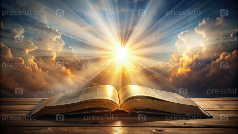 Открытая Библия под небесным светом