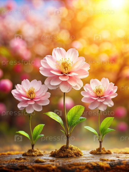 Три деликатных розовых цвета цветут под мягким солнечным светом