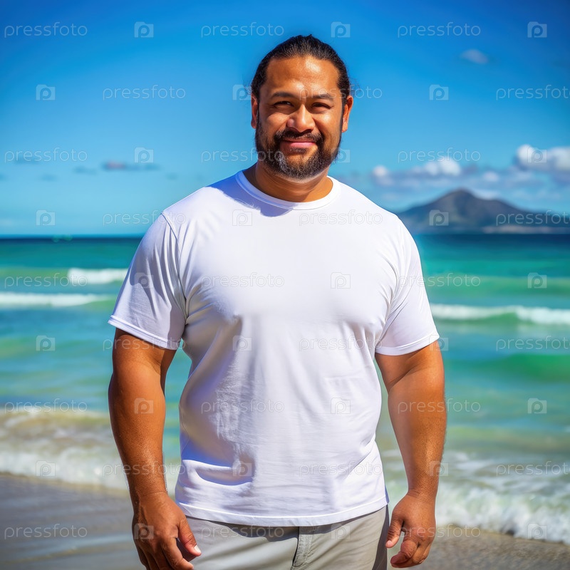 Человек улыбается на пляже в солнечный день