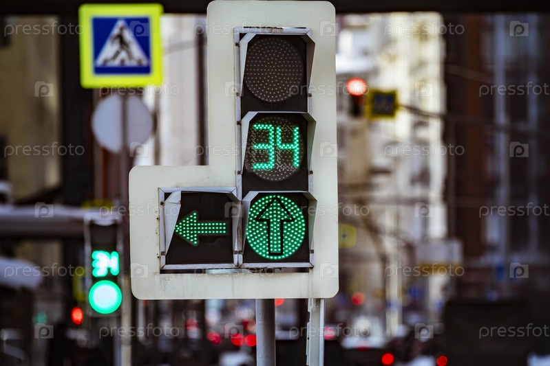 Городской светофор с таймером обратного отсчета и зеленым сигналом
