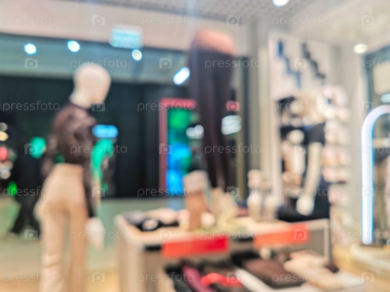 Размытый интерьер современного магазина одежды с манекенами и одеждой на экспозиции, создавая стильный фон розничных магазинов моды