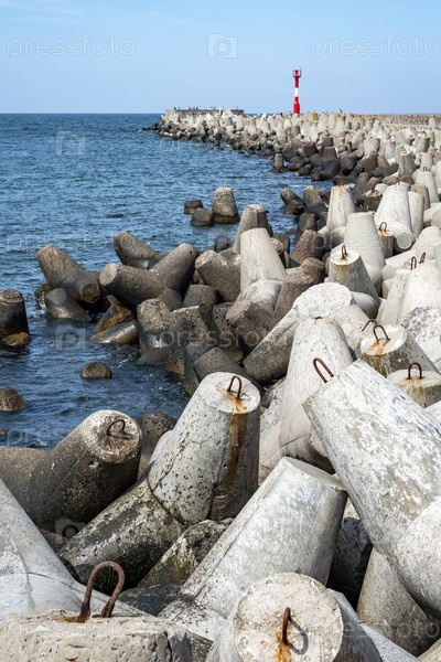 Вид на северный пирс с тетраподными волноломами в городе Балтийск