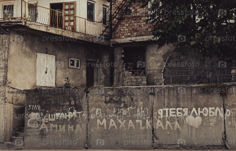 Старая городская архитектура с граффити в Махачкале, Дагестан