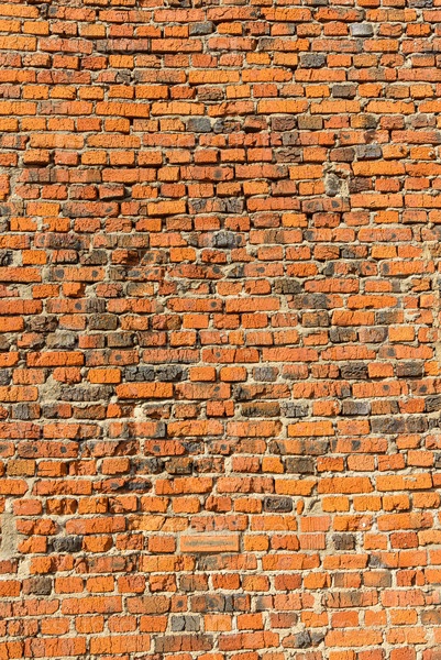 Текстурированная стена из красного кирпича с видимым раствором и трещинами
