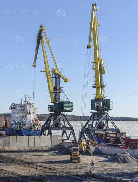 Промышленные краны загружают грузы в оживленном морском порту