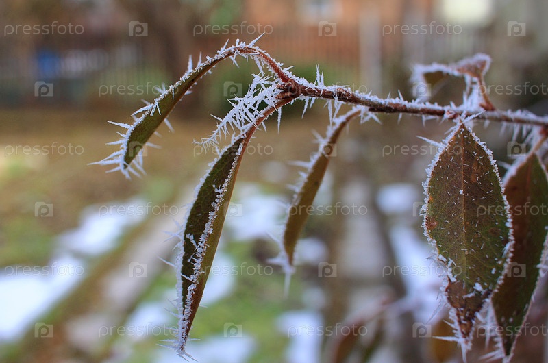 Игольчатый иней на деревьях и растениях