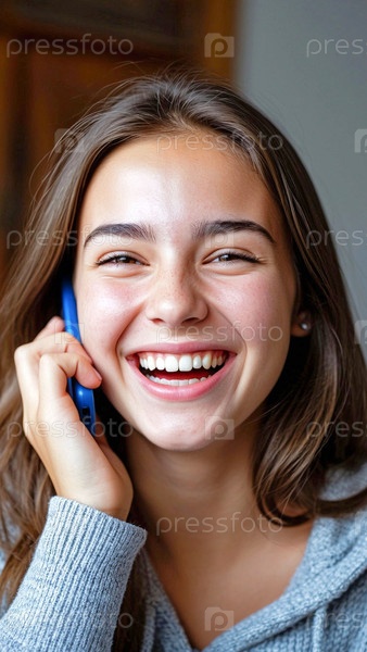 Девушка разговаривает по телефону и смеется. Красивая молодая женщина разговаривает по телефону. Девушка смеется разговаривая по телефону
