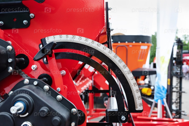 Вид сельскохозяйственной техники с измерительной шкалой на размытом наружном фоне, концепция точного земледелия