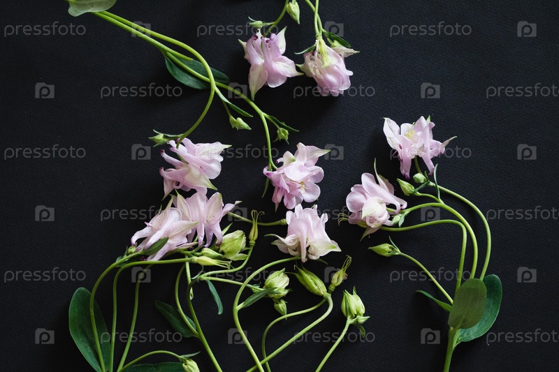 Нежные розовые цветы окружают пустую карточку на черной поверхности в спокойной обстановке