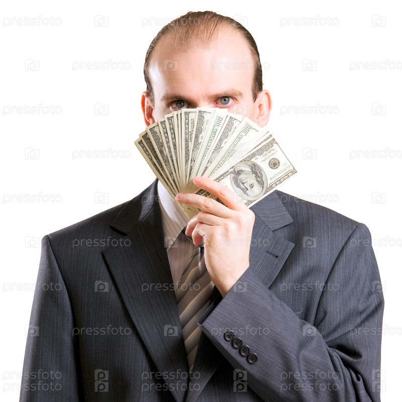 Мужчина с долларовыми банкнотами в руке