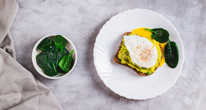 Сэндвич с авокадо с яйцом и шпинатом на тарелке